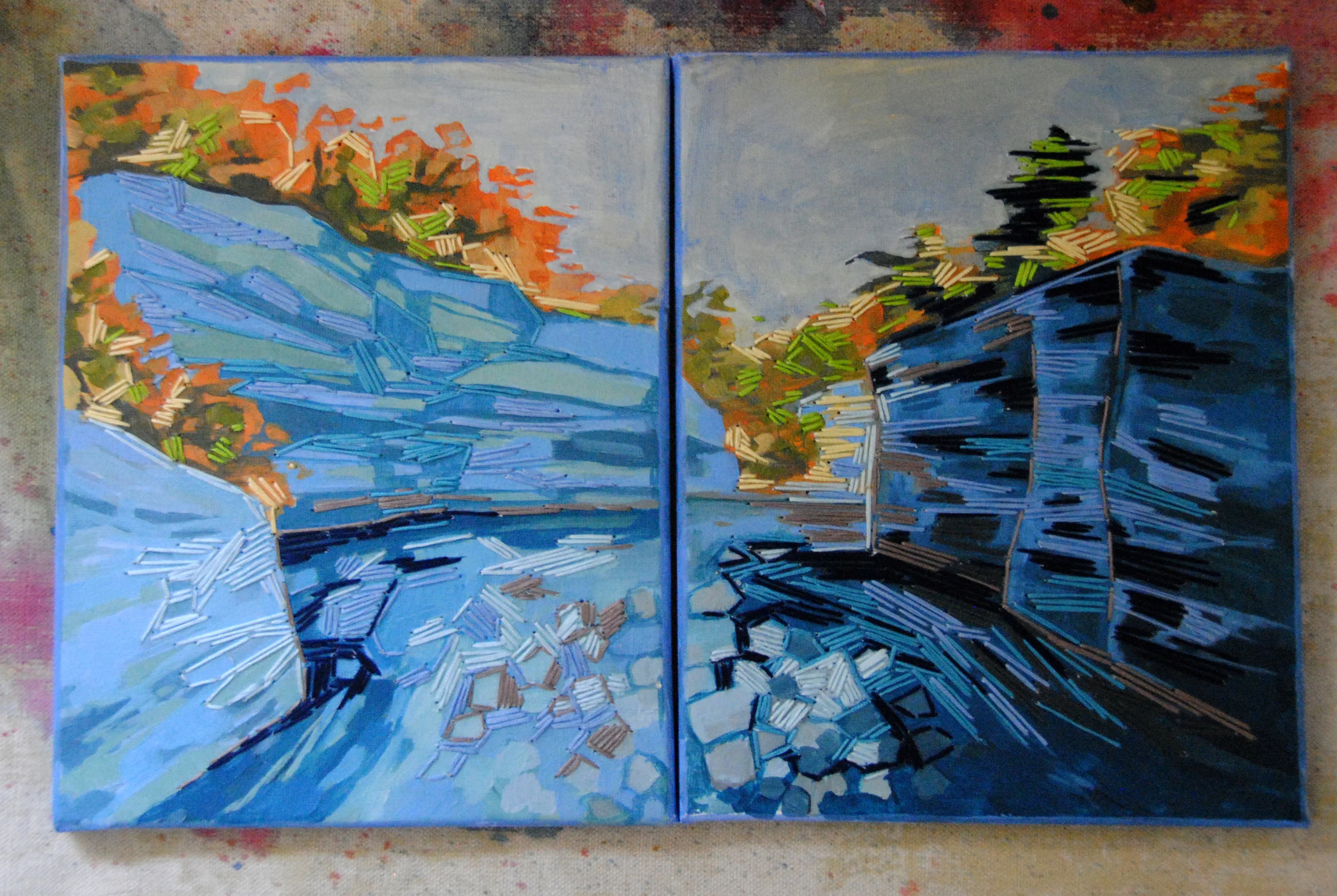 (2) 8x10” / Acrylic, tissue, dye, pastel, and cotton thread on canvas